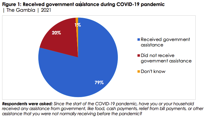 ? Eight in 10 Gambians (79%) say their households received government assistance to help mitigate the impact of the COVID-19 pandemic (Figure 1).