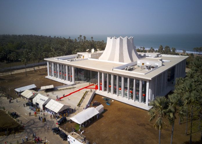 Every modern architectural building must have a distinctive character, and for the Sir Dawda J. International Conference Center, the inspiration comes from a mixture of unique local and transcontinental geographical and cultural features. Located in the Bijilo National Park aka Monkey Park, which is on the oceanfront, the design of the facility is inspired by the white waves of the Atlantic. An aerial view of the edifice nicely places it in the azures of the blue seawater of the vast and furious Atlantic against a beautiful skyline contrasting with the evergreen forest of the park.
