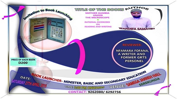 Wandifa Samateh, a university-going professional teacher has authored two books, both of which will be launched at a grand ceremony to be held at the B.O. Samega Janneh Olympic Hall in Serrekunda East on Saturday 27th April, 2019, beginning at 3pm.